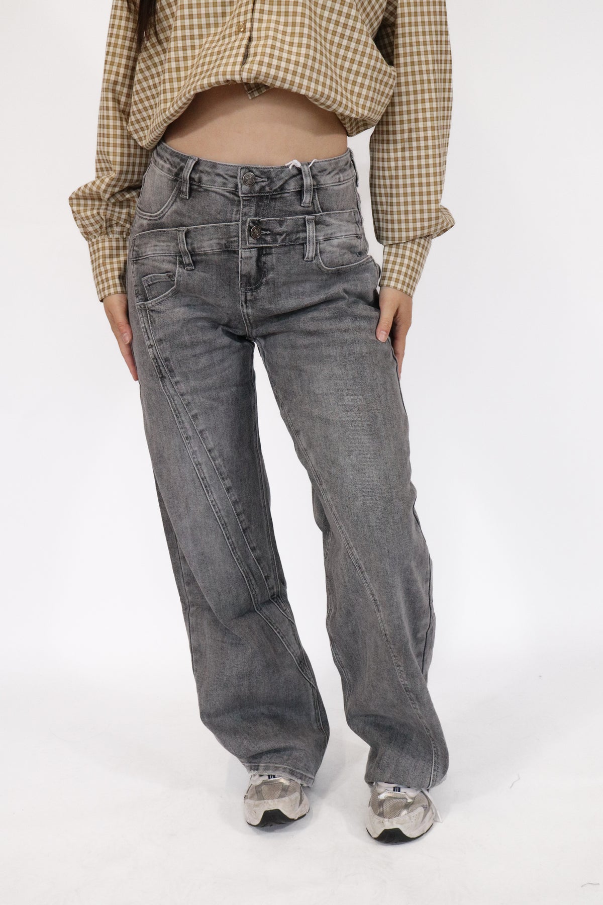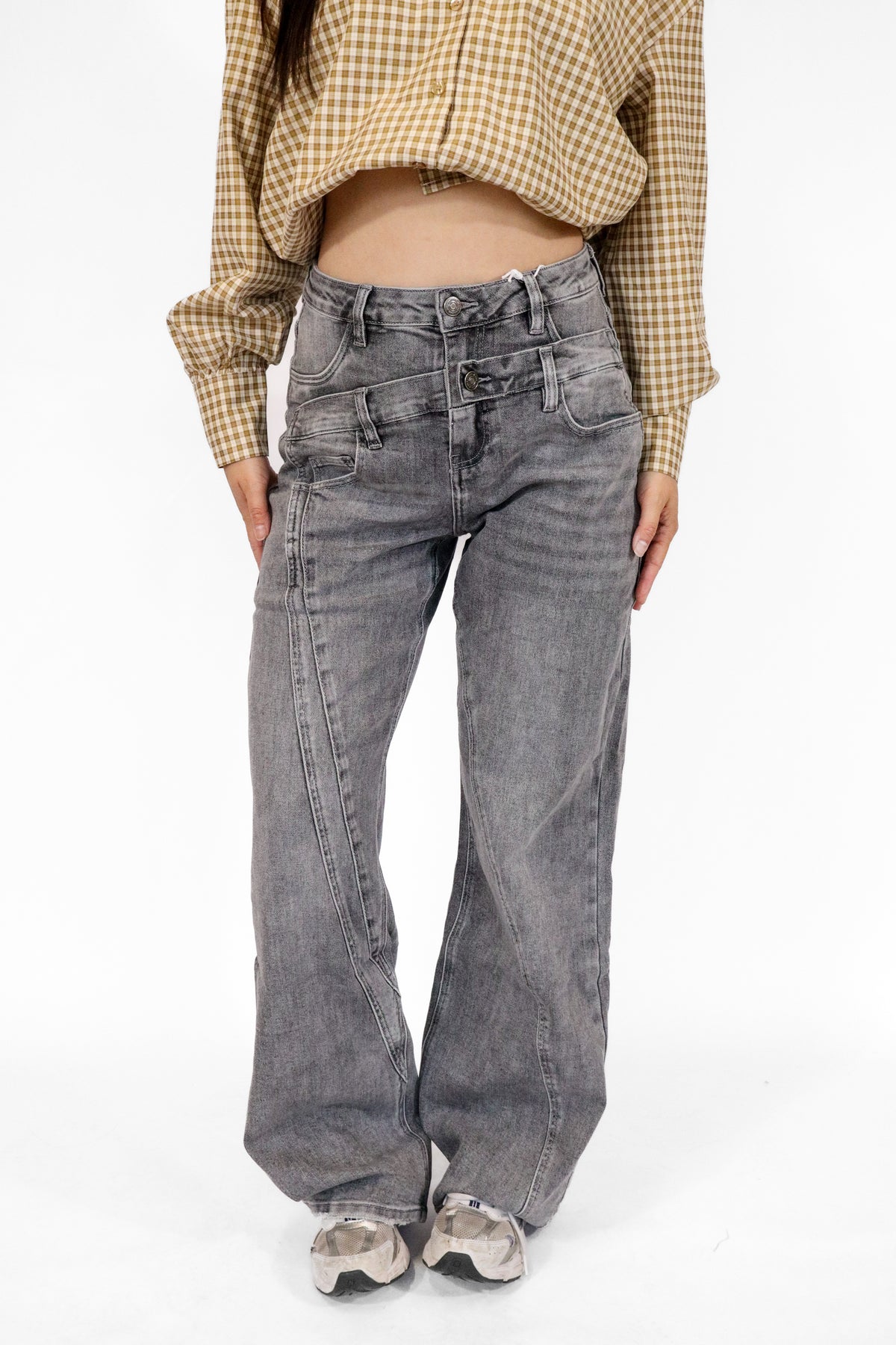 De broek heeft een dubbele knoop detail look en een wijdere broekspijp met een fijne stretch.