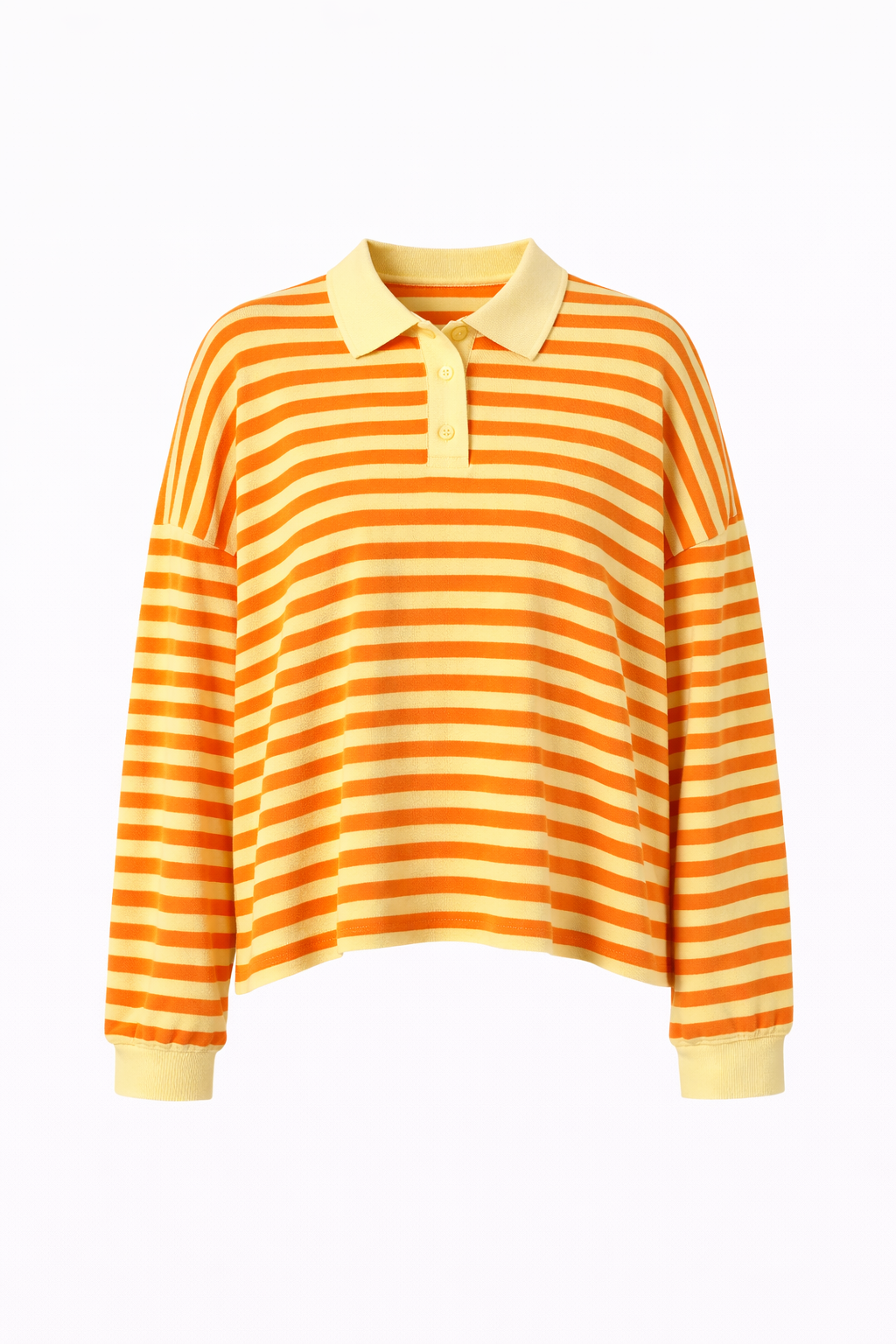 De top heeft strepen en een polokraag met knoopsluiting en een losse pasvorm.