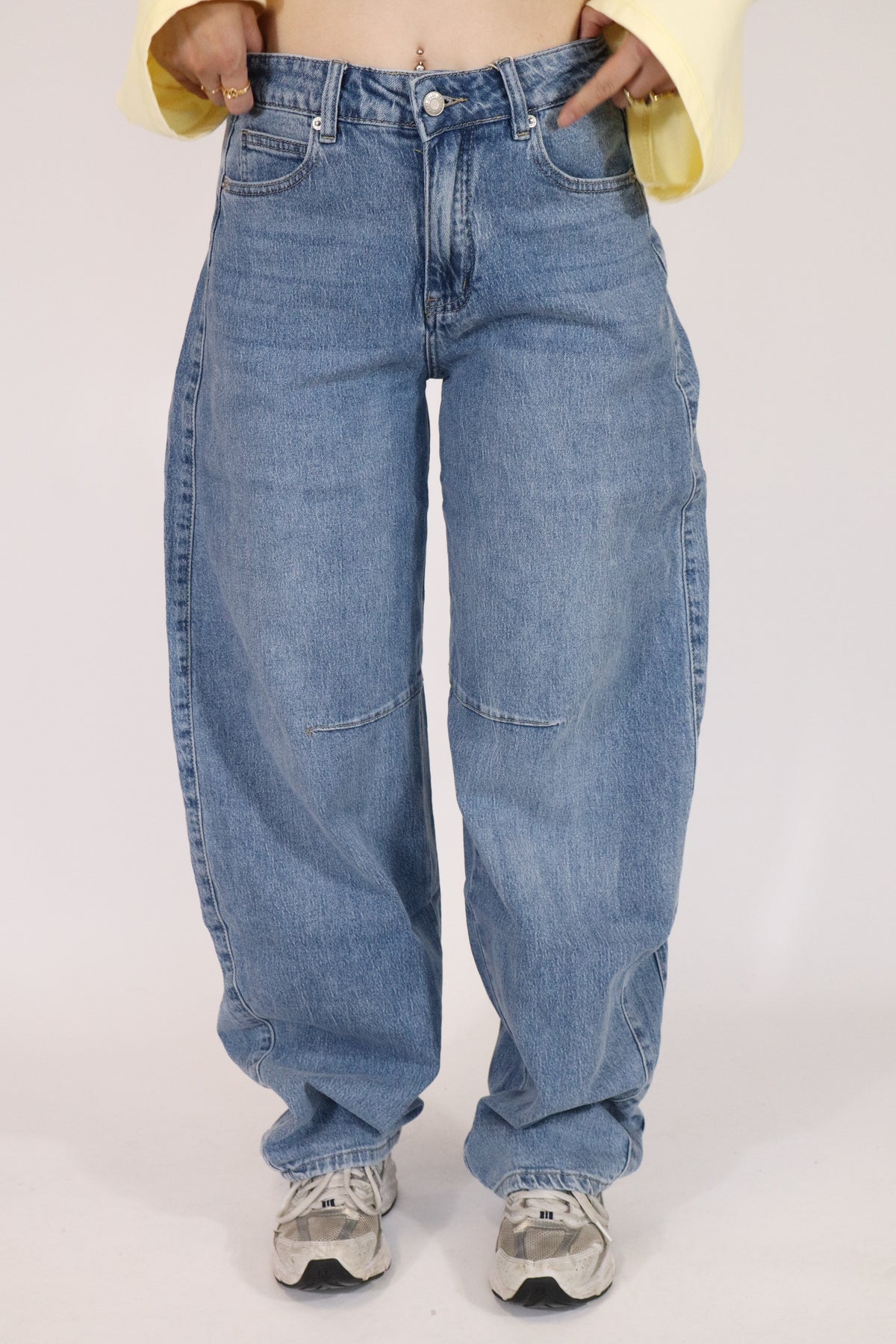 Deze baggy balloon jeans heeft een mid waist pasvorm en zit comfortabel op de heupen. De broek heeft wijde pijpen en een ronde ballonvorm voor een trendy en losse look de broek bevat stretch.