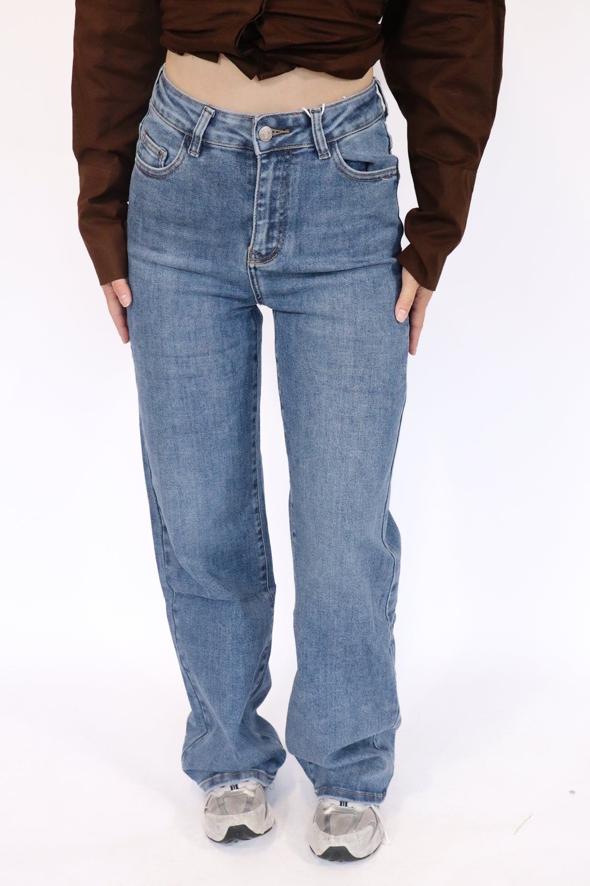 De broek valt highwaist met een wijdere broekspijp perfect voor je alledaagse jeans! De broek bevat een stretch.