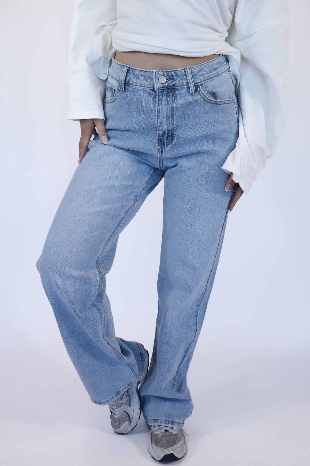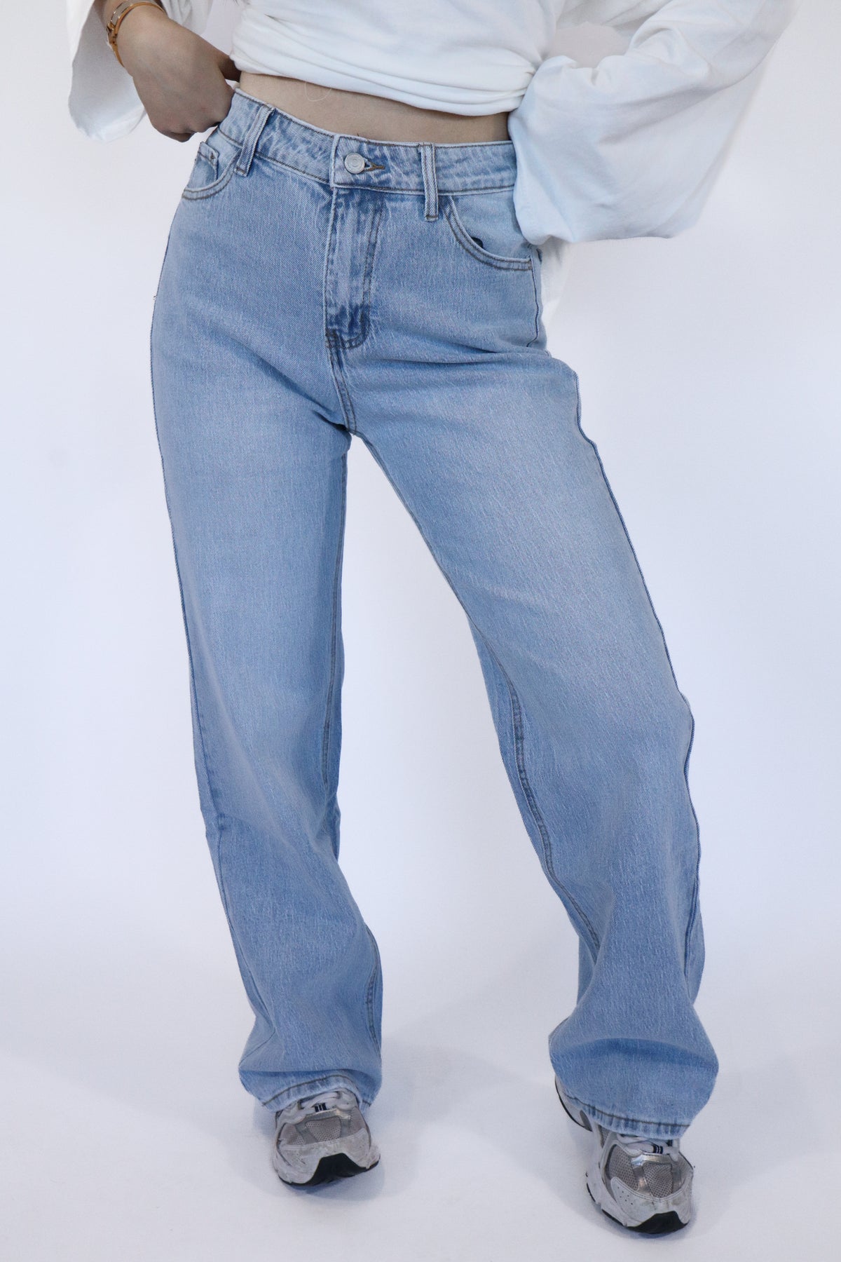 Deze lichtblauwe jeans heeft een fijne pasvorm en zit comfortabel. De hoge taille sluit mooi aan met wijdere broekspijpen.
